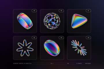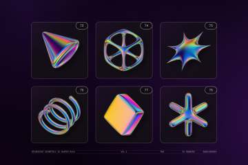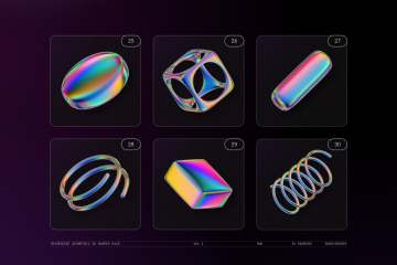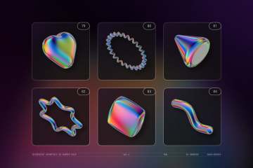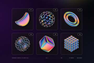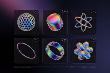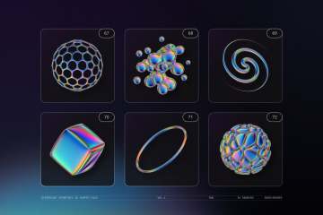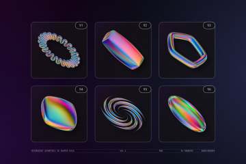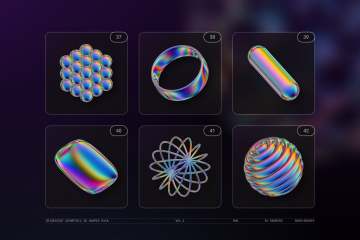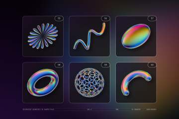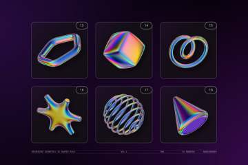我们很高兴为您带来 Iridescent Geometric 3D Shapes Pack Vol.1!