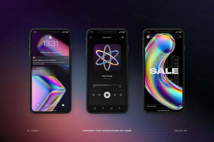 在这个包中,您会发现以 5000×5000 像素 PNG 文件形式提供的 96 个高分辨率 3D 渲染。由于每个元素都与其背景隔离,您可以从这个庞大的库中进行挑选,并将您选择的 3D 形状拖放到您的项目中。兼容各类设计软件!