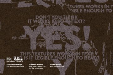 Hit&Run 是一个置换贴图纹理工具包,可为您的作品提供破碎的扫描仪失真效果。只需使用带有过滤器的简单效果 - 扭曲 - 置换 - 选择套件,瞧!为了获得更好的效果,您可以在一幅作品中使用 2 种以上的效果,以填满画板。此外,作为一个愉快的顶部,您可以使用纹理在您的作品中赋予更粗糙的外观。内置高分辨率真实失真扫描仪效果,此纹理套件适用于任何类型的作品,从印刷或数字。