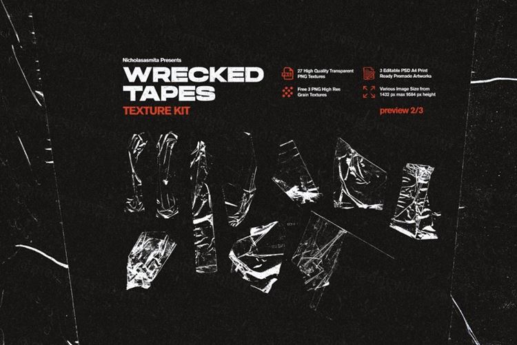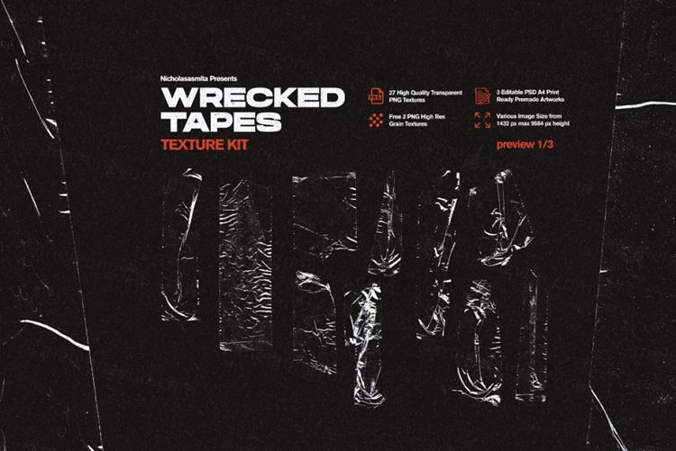 Wrecked Tapes Texture Kit:33 个物体撕开的胶带