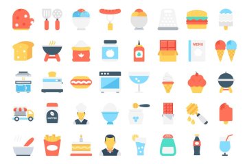 图穷联素材库 » 扁平化美食图标素材 180 Flat Food Icons