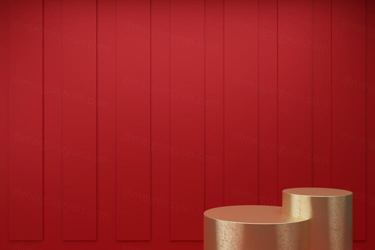 图穷联素材库 » 高质量3D渲染简约风产品展示台金色讲台场景高清红色背景素材
