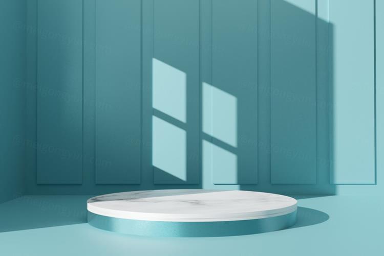 高质量3D渲染清爽绿色简约风产品展示台大理石讲台场景高清背景