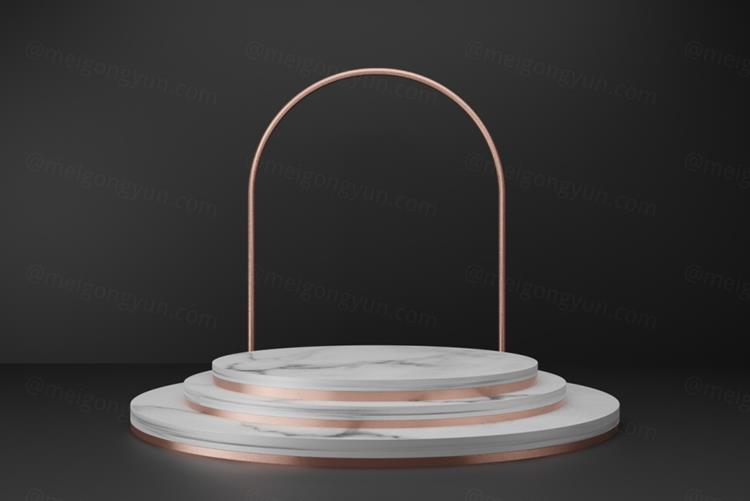 图穷联素材库 » 高质量3D渲染简约风产品展示台玫瑰金大理石讲台场景高清背景素