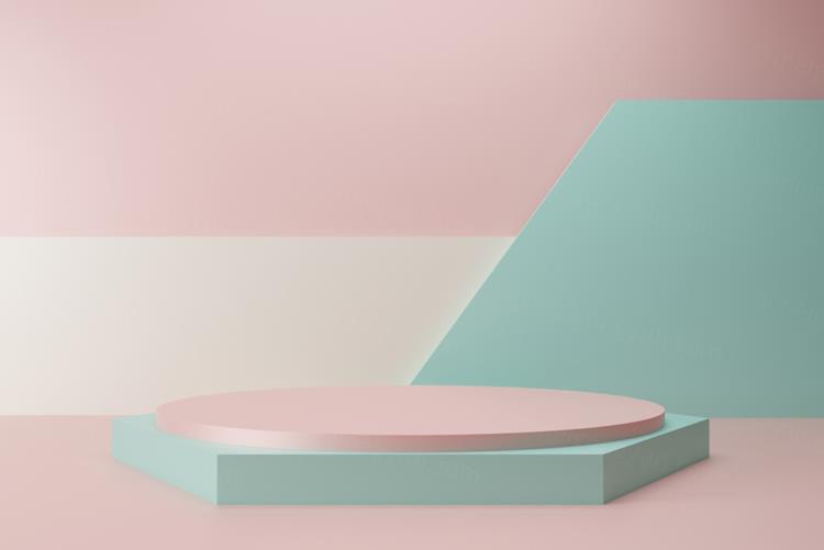 高质量3D渲染清爽绿粉色简约风产品展示台金色领奖台场景高清背