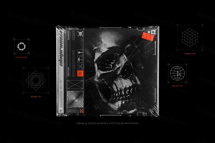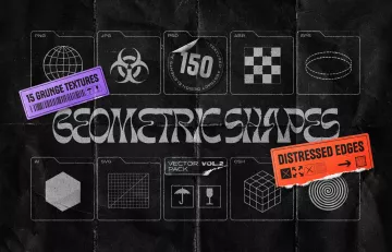包含超过 150 种带纹理的几何矢量形状和 15 种无缝垃圾纹理,您可以创建从复古未来主义海报到时尚酸性图形专辑艺术的任何东西。 该系列包含: