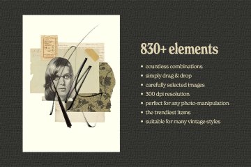 令人敬畏的 830 多个精心挑选的复古 PNG 元素的集合。这将为您节省大量制作自己的拼贴画的时间。减少单调乏味的工作时间,更多时间发挥创造力!只需拖放您想要的对象并与它们创建无数组合。适用于许多不同的拼贴风格:从模仿模拟拼贴到超现实、宇宙或复古风格。非常适合海报艺术或任何品牌元素!所有图像的分辨率为 300 dpi。