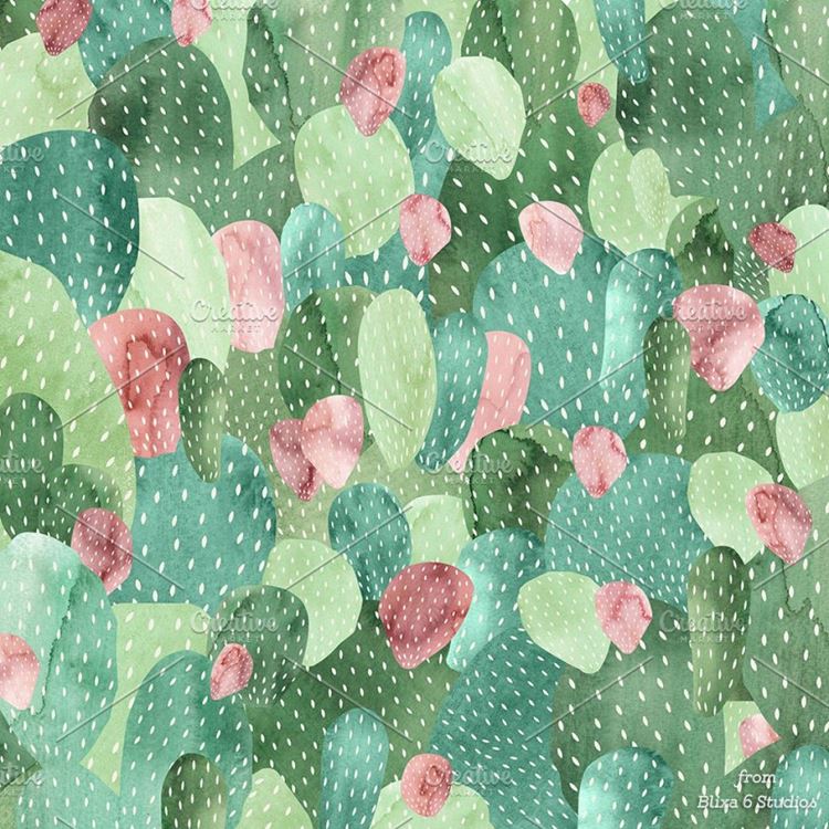 水彩手绘沙漠仙人掌玫瑰金箔燕子图案合辑 Cactus Gre