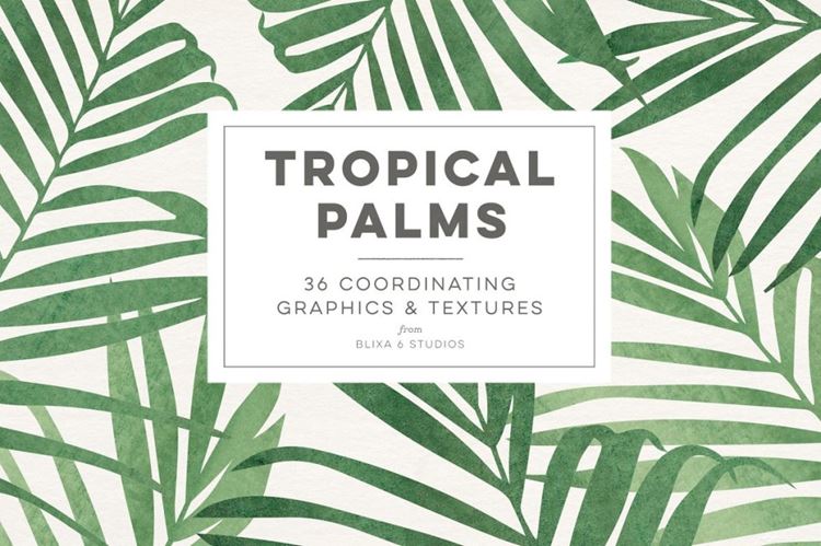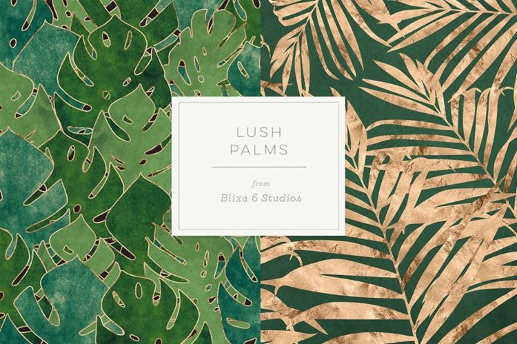 郁郁葱葱的棕榈树- https://creativemarket.com/blixa6studios/2975623-Lush-Palms-Green-Golden-Graphics