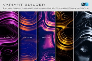 使用随附的 Variant Builder PSD,您可以轻松自定义每个纹理的感觉,通过使用预先构建的调整来获得多种不同的外观。由于所有 Variant Builder PSD 调整都是实时过滤器/效果,因此您可以针对您的特定项目对它们进行更多微调或创建自己的自定义调整。