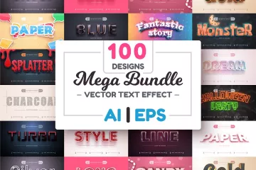 你好!我很高兴介绍我的新 bundle 100 矢量文字效果。只需写下您的文字,效果就会生效!使用这款独特的 100 种矢量文字效果来表达自己,尽情发挥创意。效果非常适合任何需要独特方便触感的项目,无论您的想象力如何!