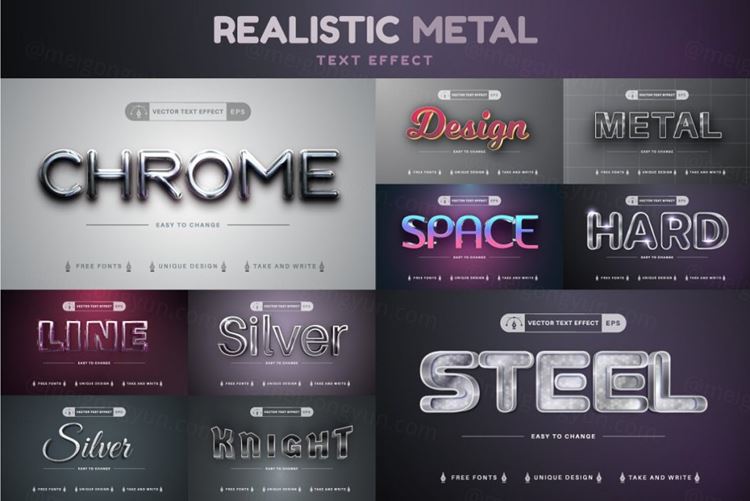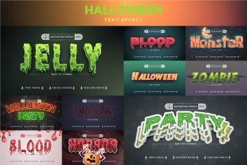 图穷联素材库 » 高质量情人节万圣节金属恐怖彩虹字体效果EPS矢量模板大合集