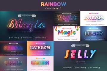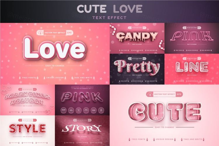 高质量情人节万圣节金属恐怖彩虹字体效果EPS矢量模板大合集
