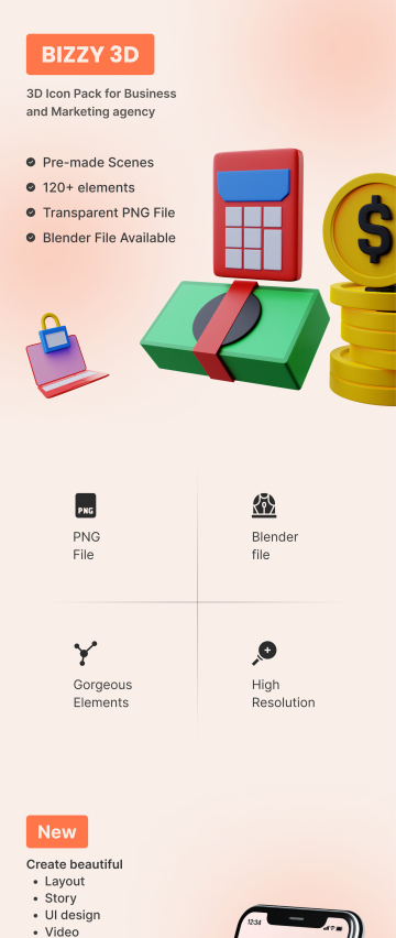 Bizzy 是适用于商业和营销机构的现代高级 3D 图标包。将 3D 元素复制并粘贴到现有的 Business and Marketing Agency 项目中。