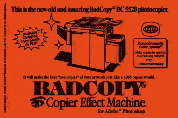 BADCOPY是一个简单但功能强大的工具,可帮助您小心地破坏您的设计和插图或任何您想要的东西,并将美妙的垃圾世界带到您的项目中。