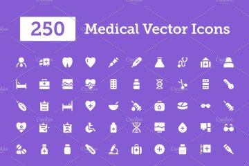 图穷联素材库 » 250个医学矢量图标 250 Medical Vector Icons