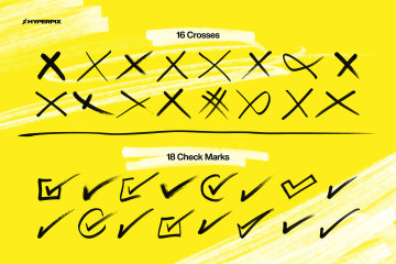 使用平面设计领域中最丰富的标记元素集合,让您的设计立即脱颖而出。包装有 1000 多件,这里有各种各样的元素。Hyperpix的marker贴图超包包括手绘圆圈、方框、刻度、涂鸦、心形、漩涡、箭头、星星、十字、线条等多项。不要忘记,还有这两个系列的字母字符,例如标记字体,仅在此处以 PNG 格式提供。
