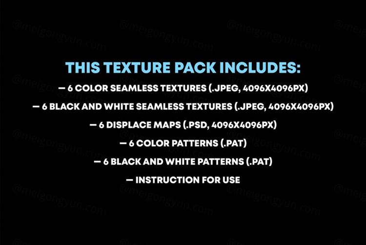 6 个黑白无缝纹理 (.jpeg, 4096*4096px)