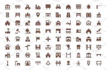 图穷联素材库 » 城市建筑图标素材 250 City Elements Material Ico