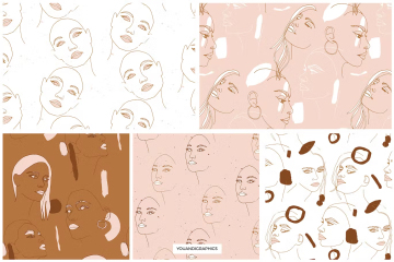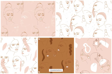 优雅的手绘女性肖像线条插画插画素材合辑 Women Patt