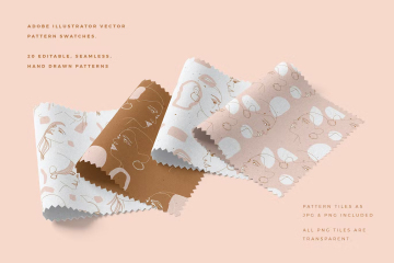 集合中使用的所有元素都是单独手绘然后变成矢量并组合成漂亮的 Illustrator 图案集!