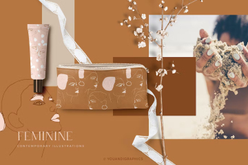 介绍女性模式 插图打印由手绘图创建的无缝矢量图案和矢量可打印组合的集合。所有这些都以优雅的线条和质朴的调色板创作,创造出独特的女性图案和插图。