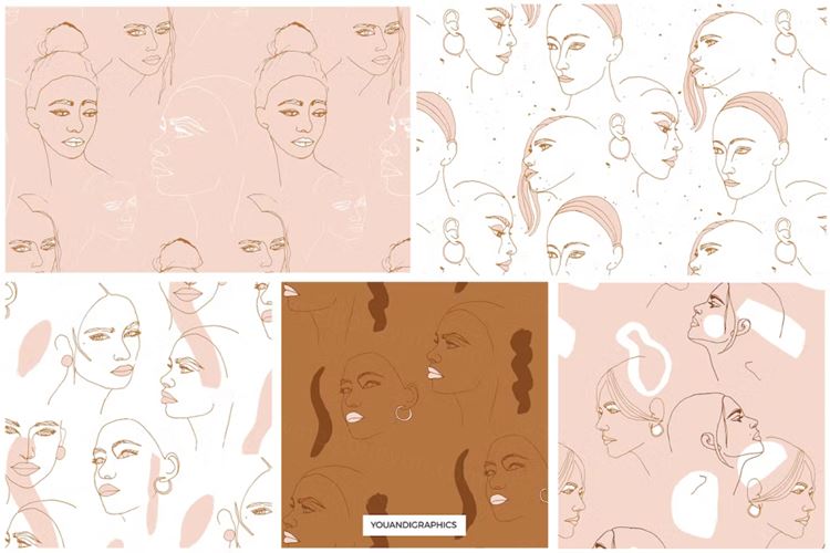 图穷联素材库 » 优雅的手绘女性肖像线条插画插画素材合辑 Women Patt