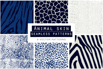一套很棒的 6 种动物皮肤无缝矢量图案!