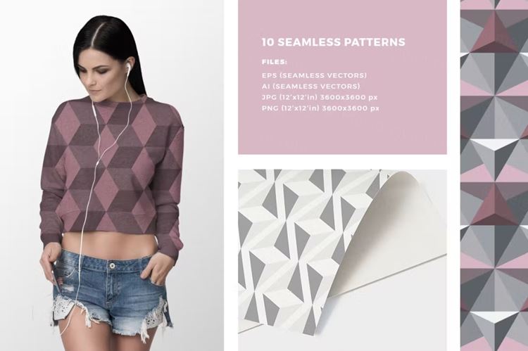图穷联素材库 » 10款3D几何抽象无缝拼接图案素材 Geometric 3D