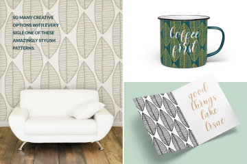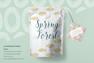 Spring Forest Pattern Collection 可以作为品牌项目、包装、时尚服装、海报、传单、壁纸的理想背景,或者只是尝试将它们作为网络背景(查看预览截图以获得更多灵感)!