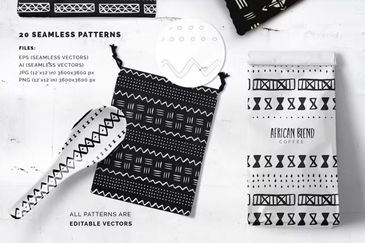 您好,我想向您介绍这个精美的20 种非洲泥布矢量图案合集!