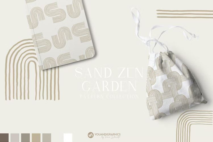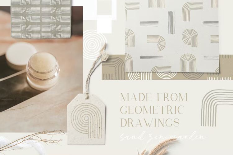 我很高兴介绍沙禅花园图案套装。一组无缝矢量图案、数码纸和图案拼贴,由受沙禅花园启发的手绘几何形状创建。这是一个宁静的选择,带有淡淡的波西米亚风格、平静的感觉和多种选择:)