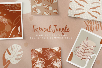 手绘热带丛林树叶插图矢量图案素材合辑 Tropical Ju