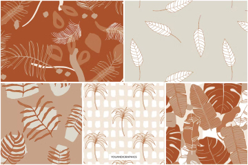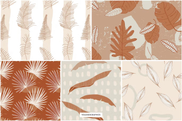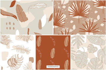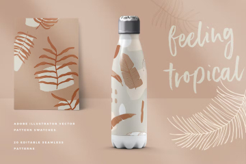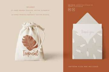 集合中使用的所有元素都是单独手绘的,然后变成矢量并组合成我最喜欢的调色板中美丽的热带 Illustrator 图案集!
