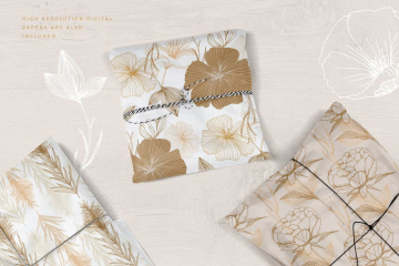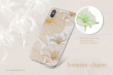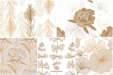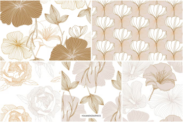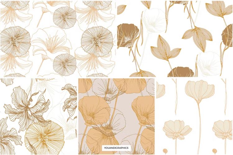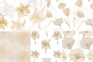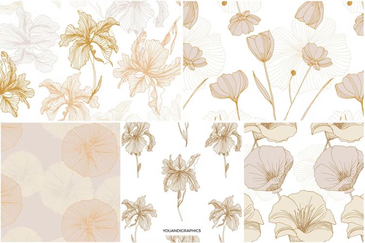 介绍优雅的花卉图案,一组由手绘创建的无缝矢量图案和矢量花卉组合。精选手绘花卉,采用优雅的线条和经典的调色板,创造出独特的花卉图案。