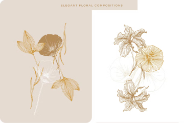 优雅的手绘线条花卉矢量图案合辑 Elegant Flower