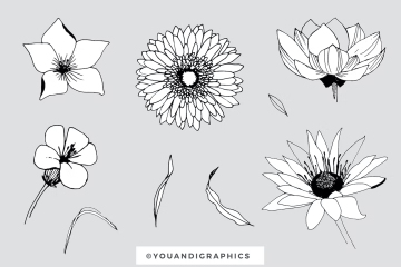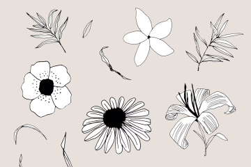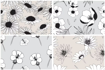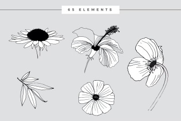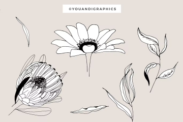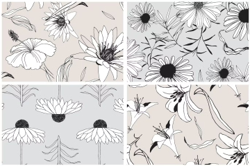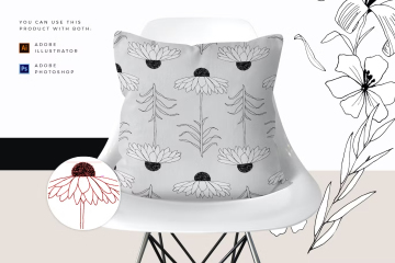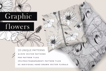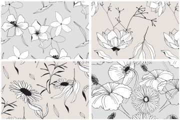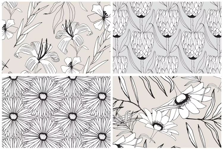图穷联素材库 » 20款优雅的线稿花朵插图矢量图案素材 Graphic Flo