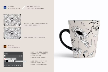 它们是完全可编辑的(通过 Adobe Illustrator),您还可以通过随附的 .psd 图案拼贴在Adobe Photoshop中使用它们。我还包括高分辨率 .jpgs & 可以在任何图像编辑软件中使用的图案拼贴的 .png!