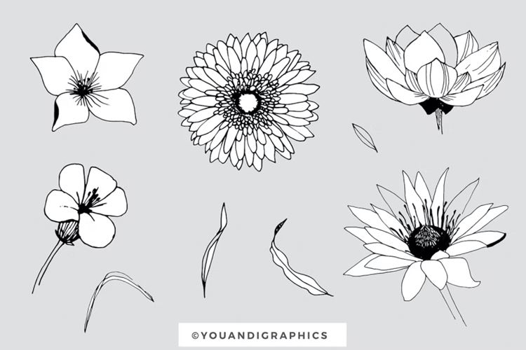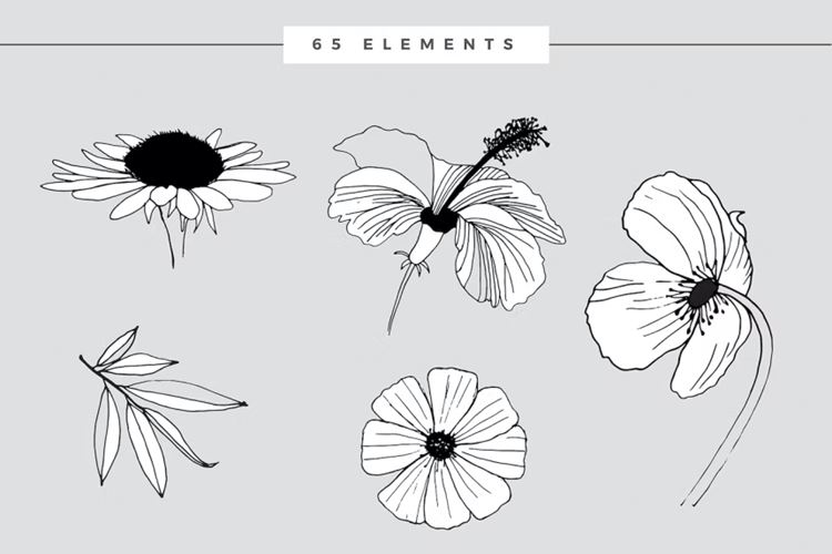 20款优雅的线稿花朵插图矢量图案素材 Graphic Flo