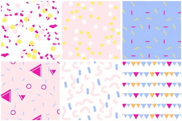 图穷联素材库 » 超级有趣的派对聚会彩纸无缝拼接矢量图案合辑 Party Pa