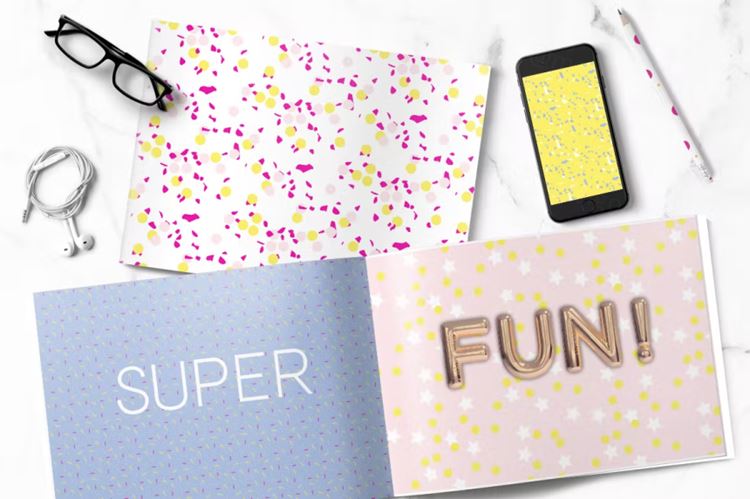 这些图案制作起来非常有趣!他们很高兴并准备参加派对,发挥创意并在任何项目中使用它们。它们是(当然)聚会请柬的理想背景,也是婚礼请柬、包装项目、时尚项目、在线博客、工艺品、品牌项目等等的理想背景!而且它们可以在不降低质量的情况下扩大规模!