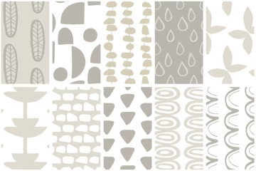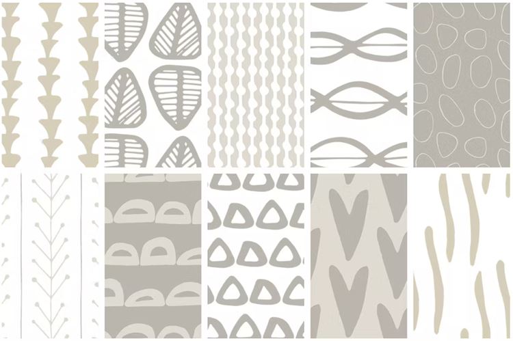 所有的图案都有简洁的线条和自然的形式,它们精致、简单,建议的颜色是冷灰色和奶油色调。