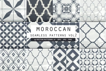一套很棒的 15 种摩洛哥风格无缝矢量图案!