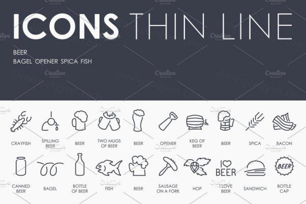 图穷联素材库 » 餐饮美食图标素材 Beer thinline icons