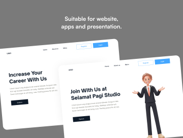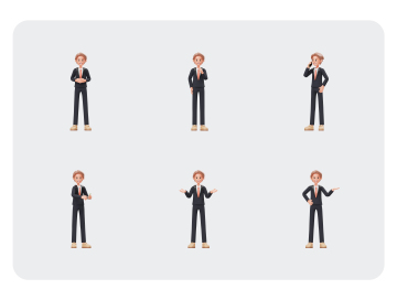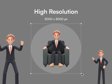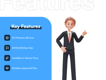 20 个现成的 Career Man 3D 角色文件对象,适用于网站、移动应用程序等。使用 3D 资产增强您的设计。