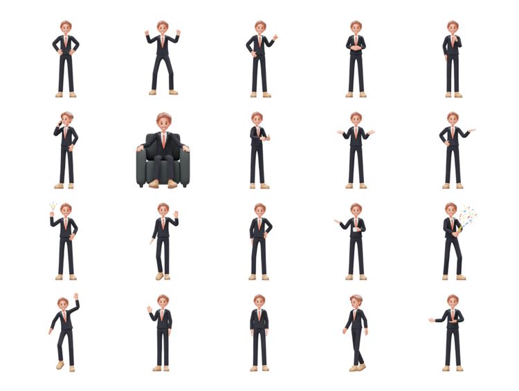 图穷联素材库 » 20个三维渲染高质量职场男性3D人物角色插画素材 Caree