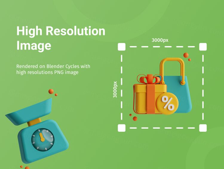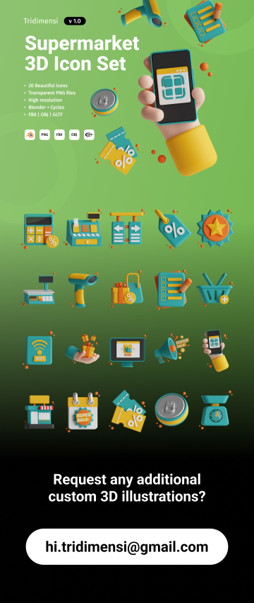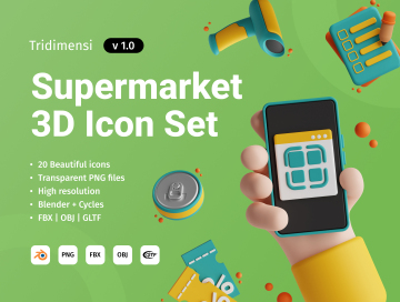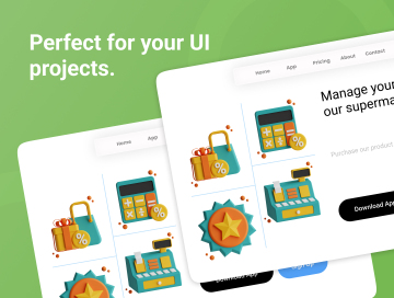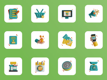 图穷联素材库 » 高质量三维渲染超市收银主题插画图标素材合辑 3D Super