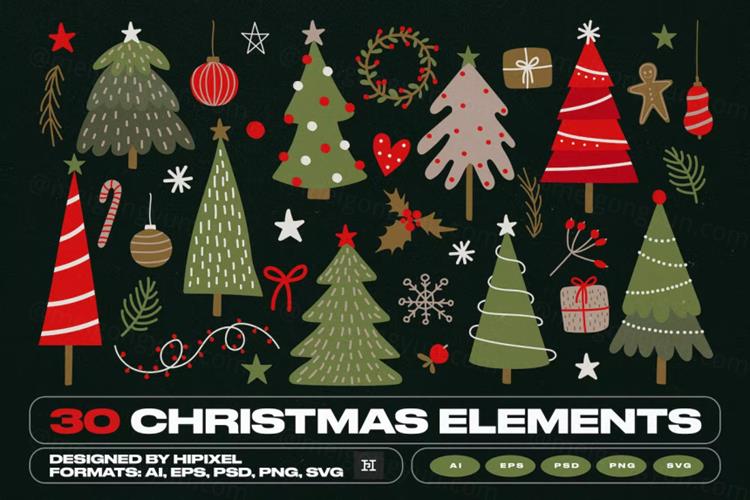 图穷联素材库 » 30个圣诞节主题装饰素材 Christmas Element