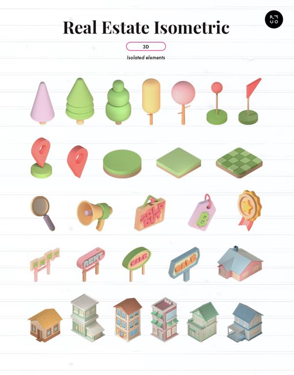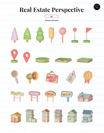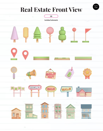 房地产业务 3D 插图包此包专为房地产内容精心打造。