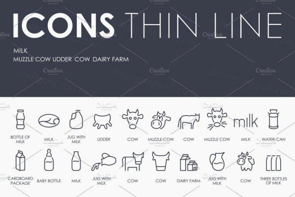 图穷联素材库 » 奶制品图标素材 Milk thinline icons